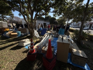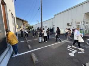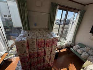 訓練終了後、防災備蓄食・トイレットペーパー・お茶を持ち帰っていただきました。