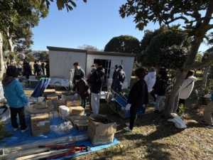 倉庫内の防災資機材をすべて搬出し、内容を確認しました。